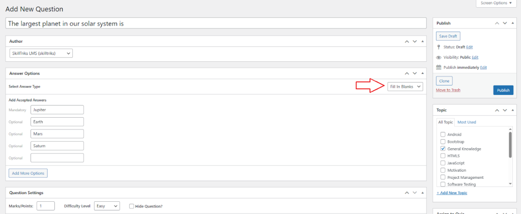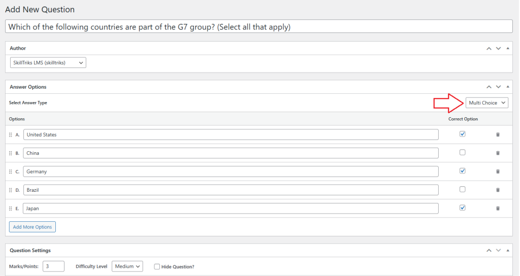 - Difficulty Level: Choose how hard the question is (Easy, Medium, Hard).