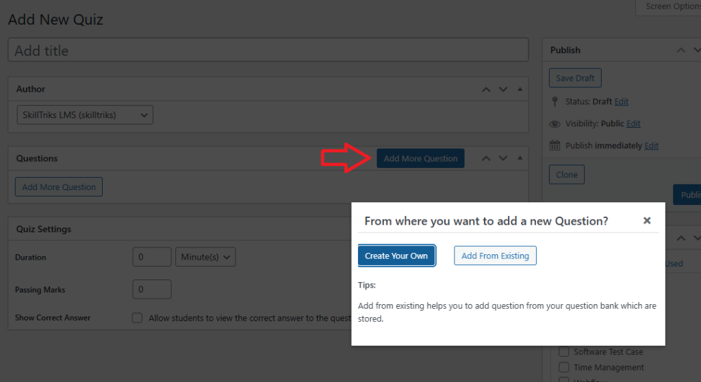 You will see these two options only when the admin clicks the “Add More Questions” button.